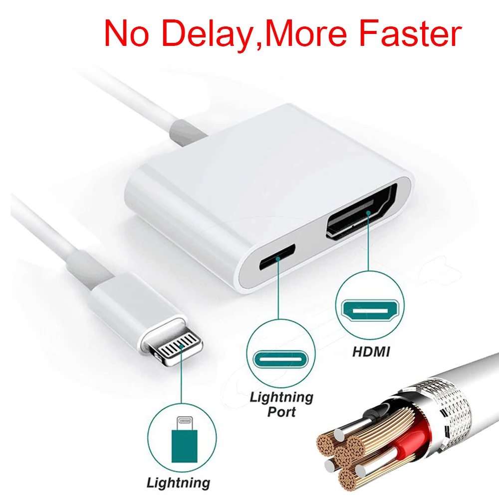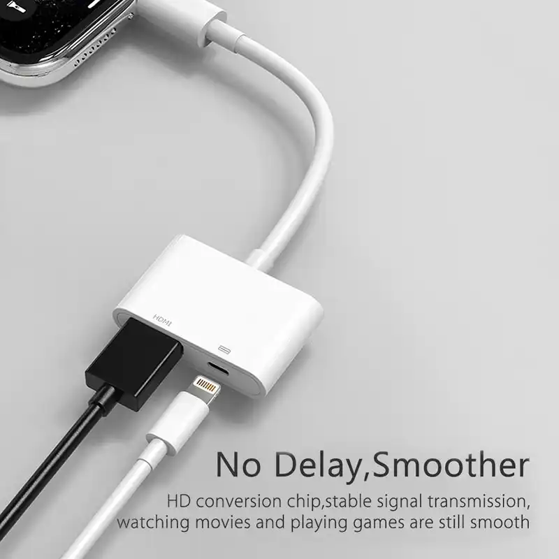 The Lightning to HDMI adapter uses the Airplay protocol when sending the signal over the adapter to HDMI. Use the Lightning Digital AV Adapter with your iPhone iPad or iPod with Lightning connector. With wireless connection especially if you dont an HDMI adapter there is a great chance for delays.